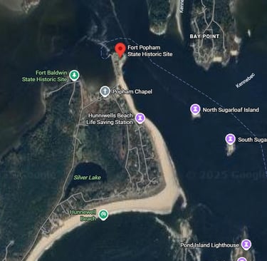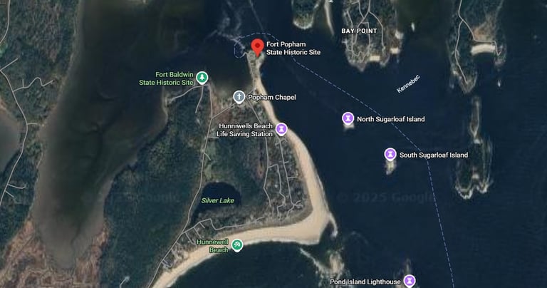 Cette maquette, un parking en gravier et une importante collection d'objets sont les seuls vestiges d'une colonie anglaise fondée en 1607 à Phippsburg, dans le Maine. La colonie de Popham fut la première tentative organisée des Anglais pour établir une colonie sur les côtes de ce que nous appelons aujourd'hui la Nouvelle-Angleterre. Elle fut fondée à l'embouchure de la rivière Kennebec durant l'été 1607 et dura un peu plus d'un an, jusqu'à son abandon à l'automne 1608. Pour rentrer en Angleterre, les colons construisirent le premier navire jamais bâti en Amérique du Nord..